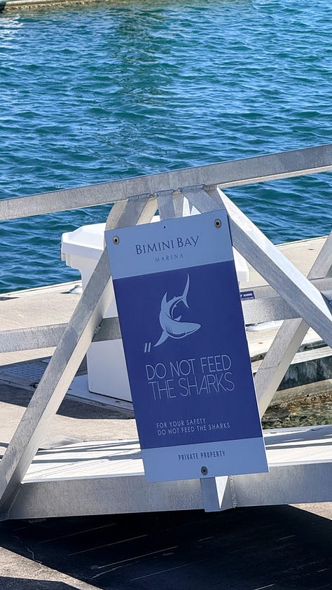 Next time: Swim with dolphins, food tour, feed the stingrays and sharks, jet skiing, snorkeling, and the Bimini Biological Field Station shark lab tour (1.5 hours — apparently incredible)