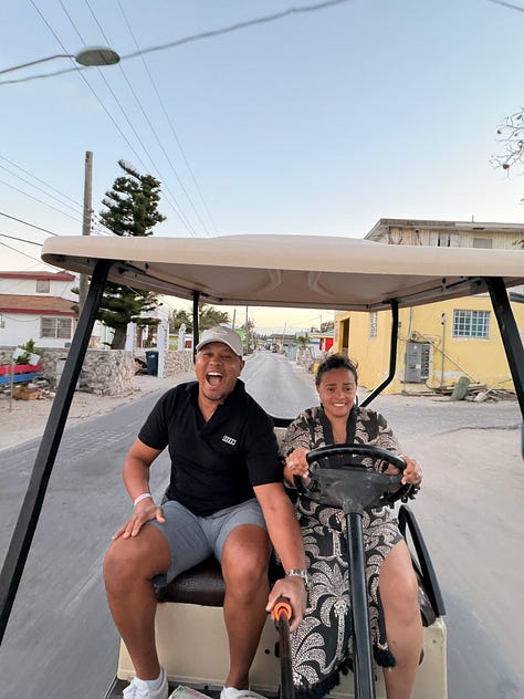 Speed took care of everything. Every detail, every reservation, every midnight pivot when the ferry became a flight. He just... handled it. And I got to be present. Fully, completely, un-spreadsheet-edly present. On a golf cart. In the most impossible blue water. With my person.