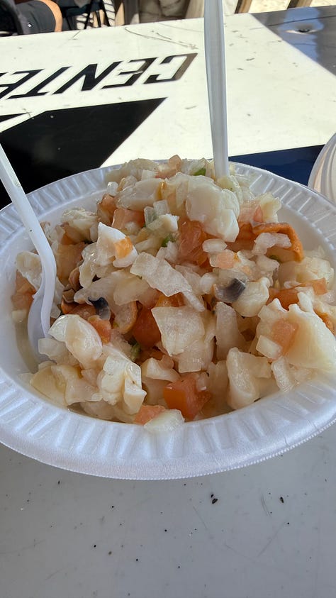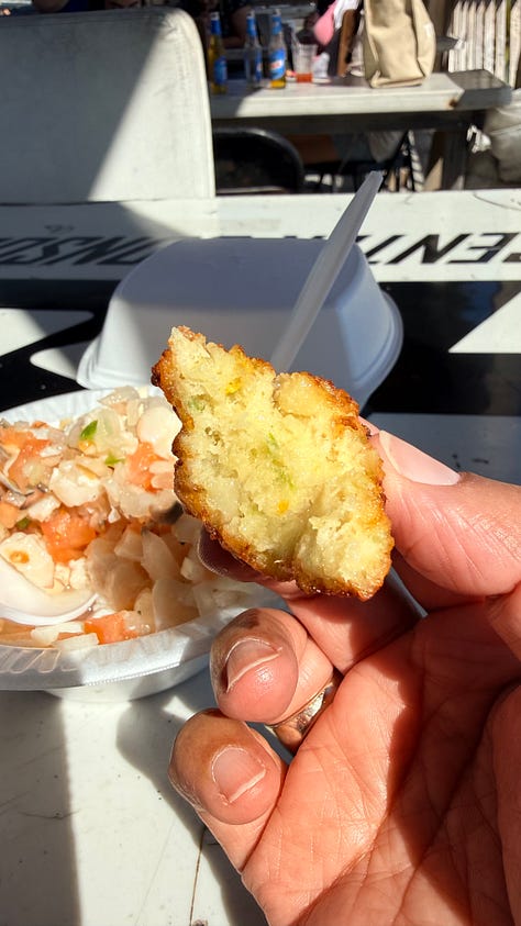 Joe’s Conch Shack ⭐⭐⭐⭐ — A must. Conch ceviche, conch fritters, piña colada in hand. The drinks take forever because you order food and drinks at two separate registers and the bartender is not in a hurry. Island time is real, y’all.