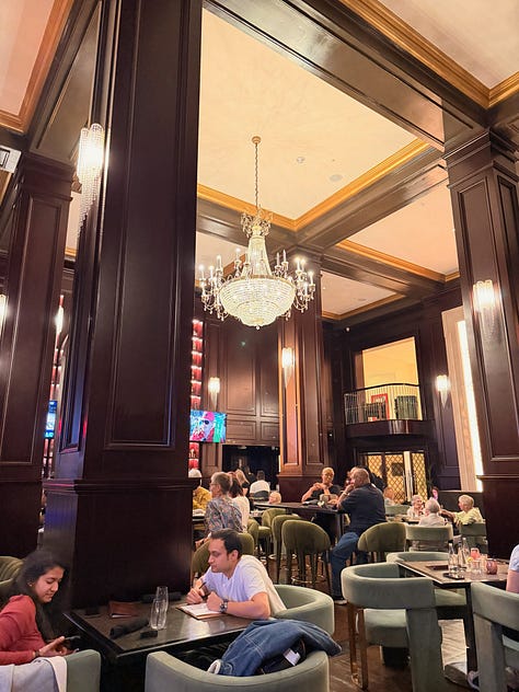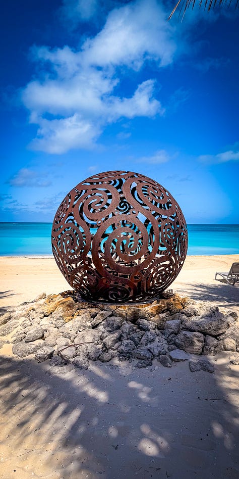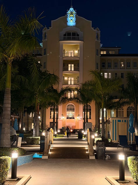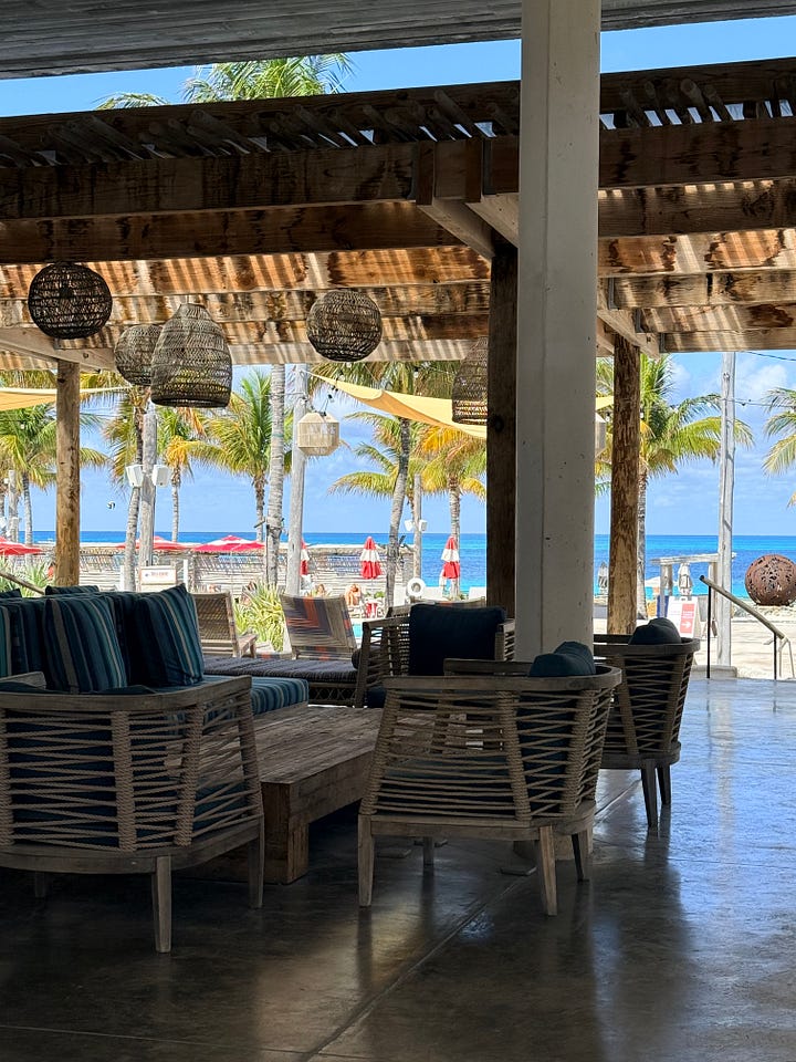 Speed chose the British Colonial Nassau and I need you to know it was gorgeous. I forgot I wasn’t supposed to be there. We had dinner at their bar restaurant called Woodes Rogers Tavern right on the property — good food, great live music, and since it sits right on the beach, we ended up taking a little walk and settling into chaise lounges for conversation under the stars. Much needed unplanned magic.