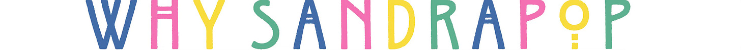 Sandrapop is what I came up with â funny, irreverent, joyful, a little dramatic, and always delivered with a wink. A newsletter about self-love, color, travel, and life that makes you laugh out loud AND walk away feeling seen, inspired, and totally fabulous.